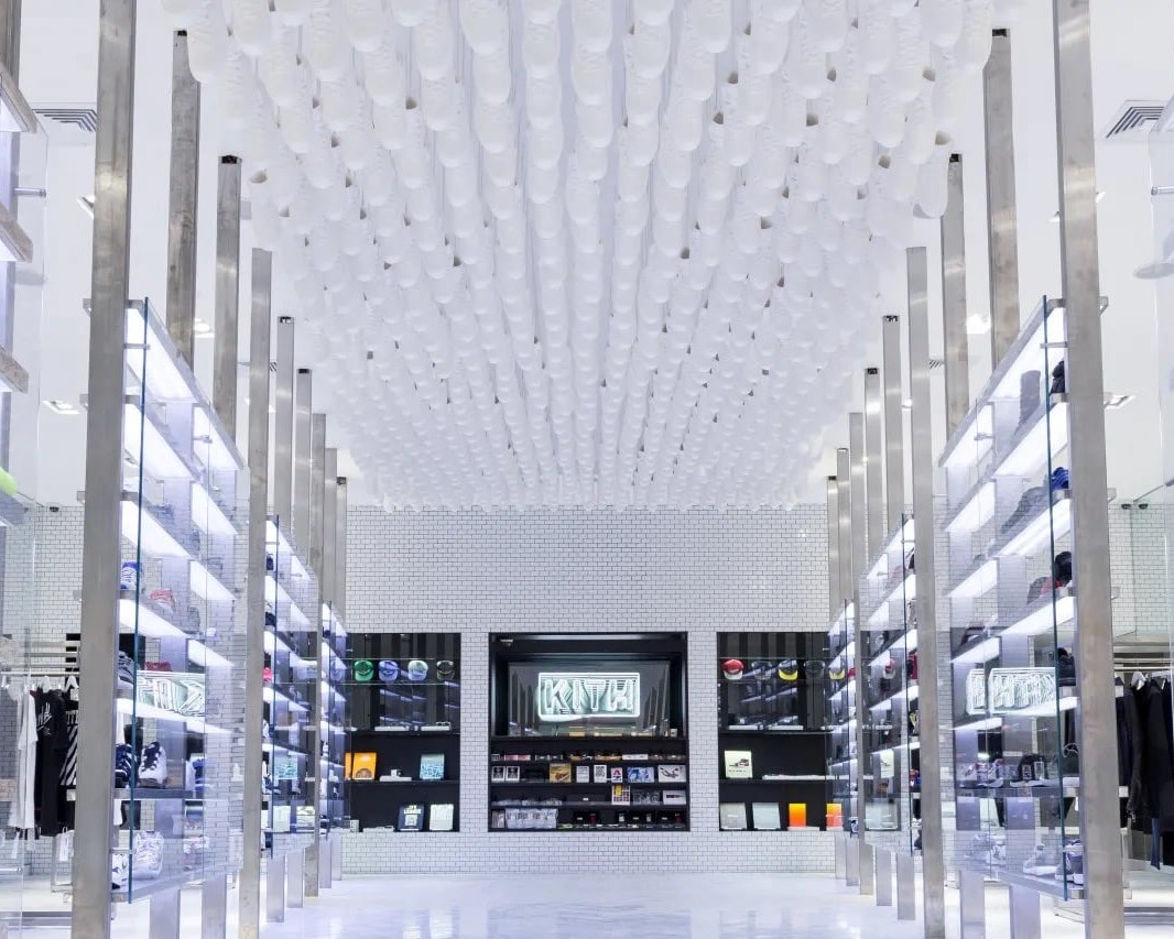 In a recent Business of Fashion article, it is revealed that Ronnie Fieg spent a total of $2 million USD to renovate his KITH Brooklyn store, which boasts such novelties as 750 white cast Air Jordan IIs hanging from the ceiling, as well as the KITH Treats cereal bar. Justifying the extensive renovation by Snarkitecture — which expanded the space from 800 to 3,000 square feet — Fieg cites the fact that 60% of sales are made in-store as opposed to online, with the business itself having expanded 300% since last year. Fieg also discusses KITH Treats, which aims to keep teenagers in a physical store space for hours, as opposed to a fleeting online relationship. Read an excerpt below, and find the whole article here.